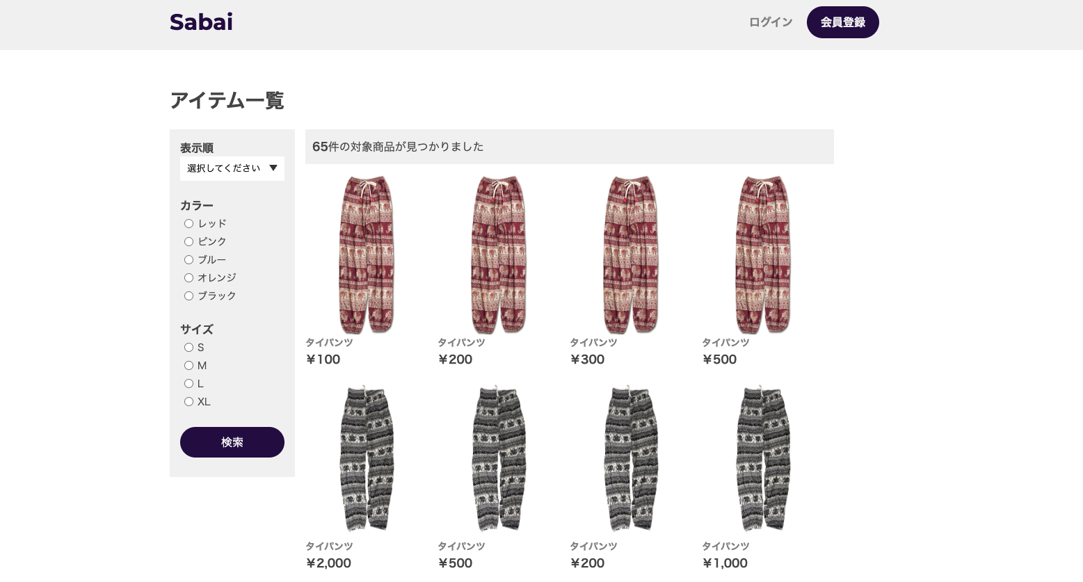以上で、タイパンツECサイト「Sabai」の完成です。