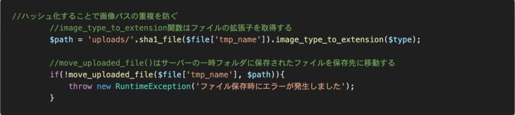 また、画像パスの重複を防ぐためにハッシュ化したり、ファイルを保存するために、一時フォルダからの移動が必要である点なども勉強になりました。