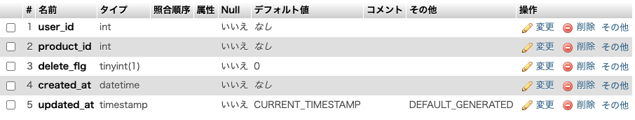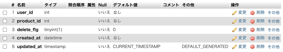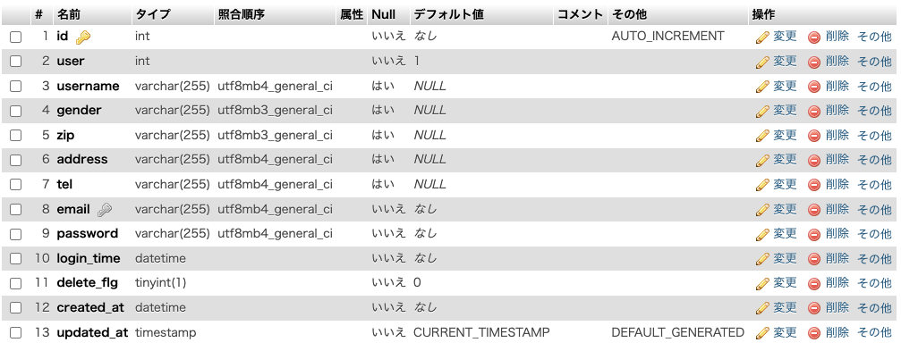 また、ログインしたユーザーが管理者かどうかを識別するために、usersテーブルにuserカラムを入れて、判別することにしました。