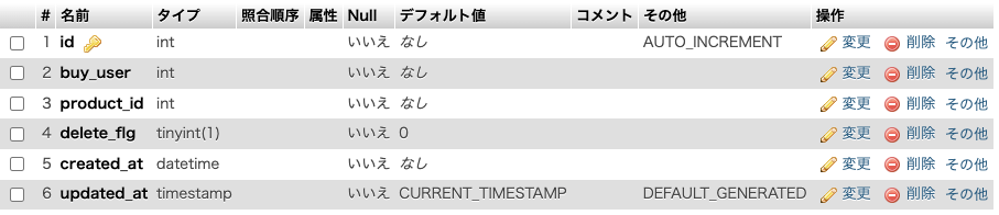 そのため、あとからカラムタイプをint型に変更しています。