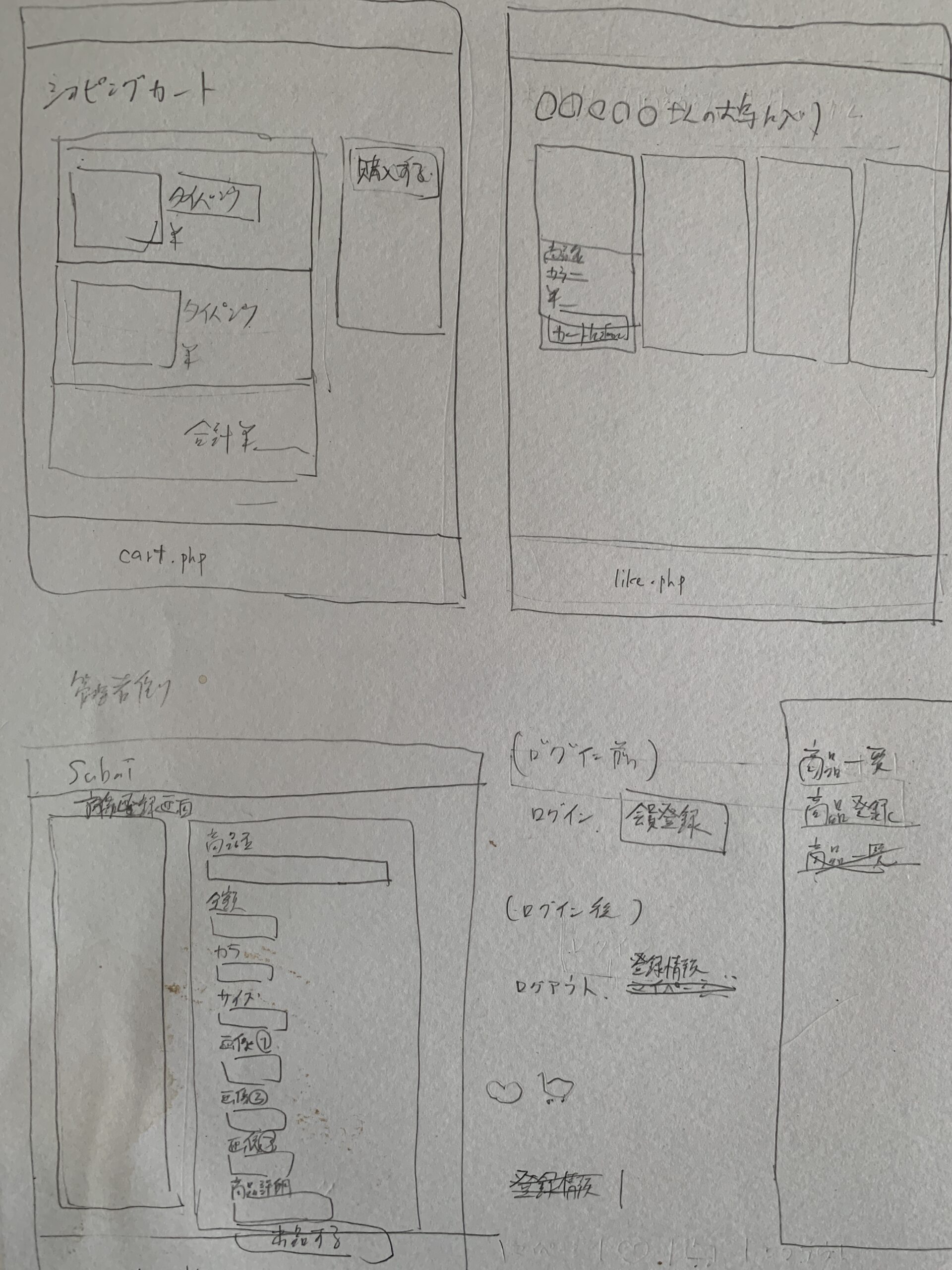 ー商品登録/新商品の登録 ⚪︎ ー商品編集/既存商品の編集 ⚪︎ ー商品一覧表示/アイテム一覧ページを開く ⚪︎ ーページネーション/ページボタンを押下 ⚪︎ ー商品詳細表示/商品をクリックして詳細画面を表示 ⚪︎ ーショッピングカート/商品をカートに追加 ⚪︎ ー注文履歴表示/購入した商品を表示 ⚪︎ ー商品検索/該当商品を選択して商品検索を実行 ⚪︎ ーお気に入り登録/ハートアイコンを押下 ⚪︎