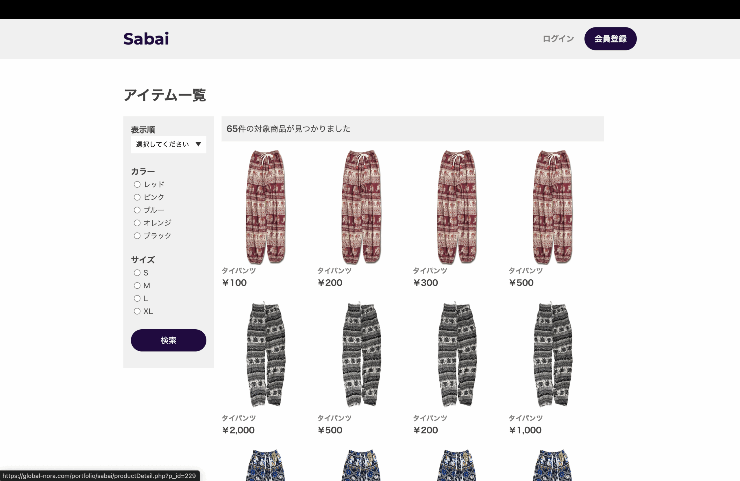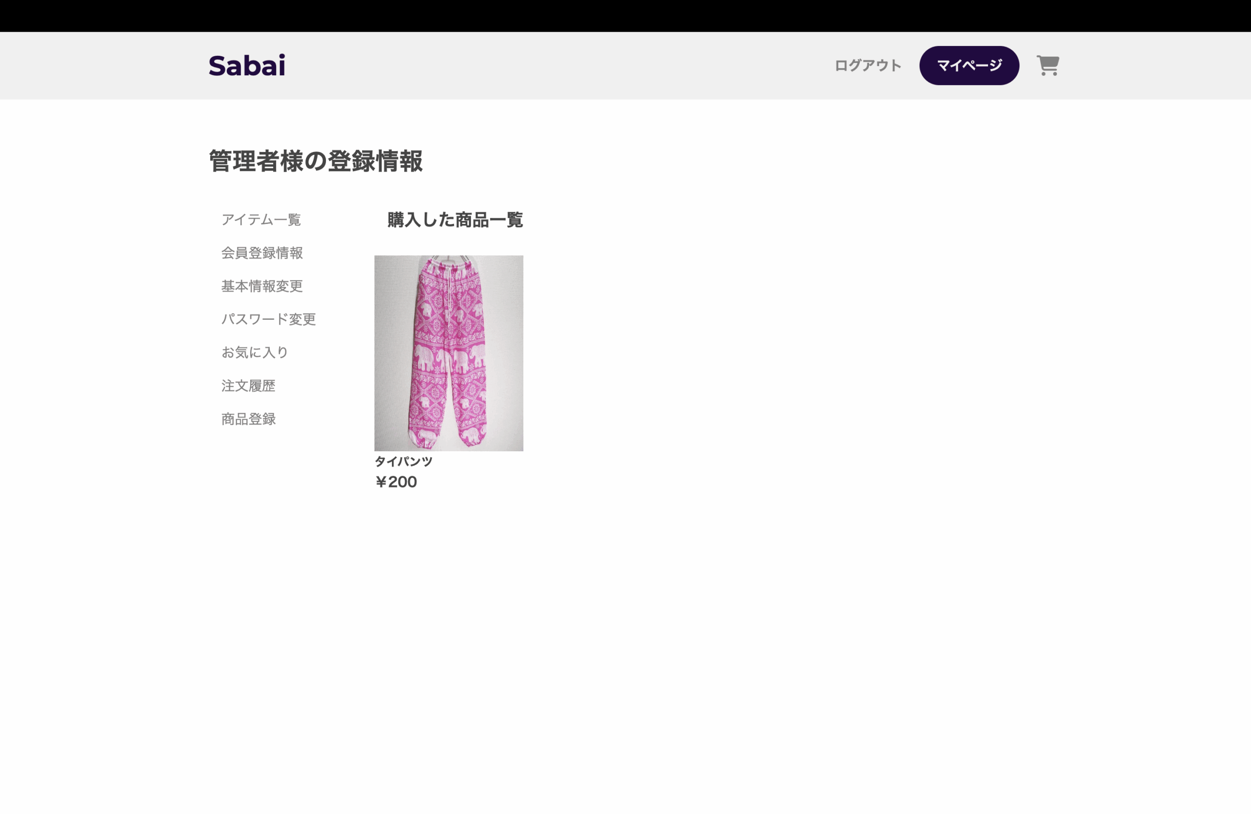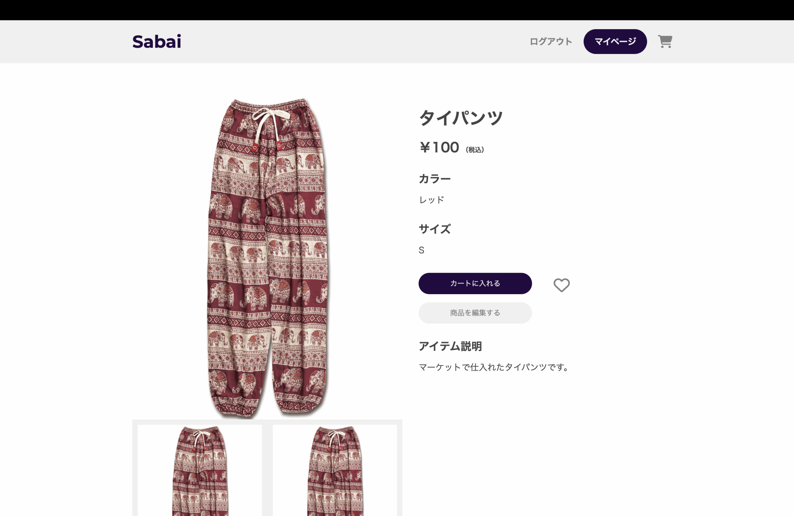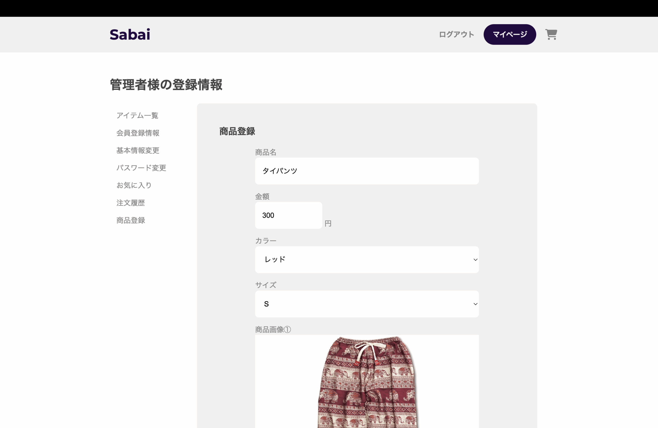 以上で、タイパンツECサイト「Sabai」の完成です。