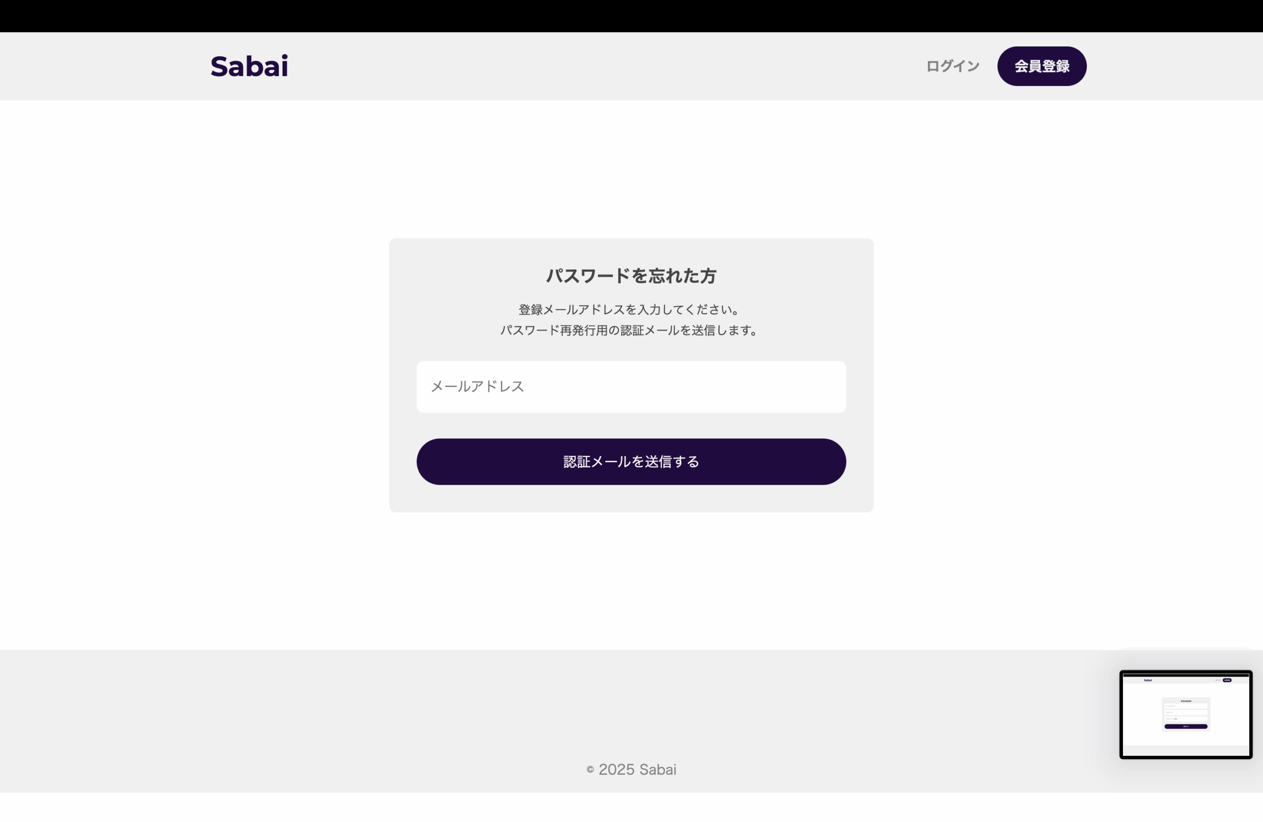 - 認証メール送信画面