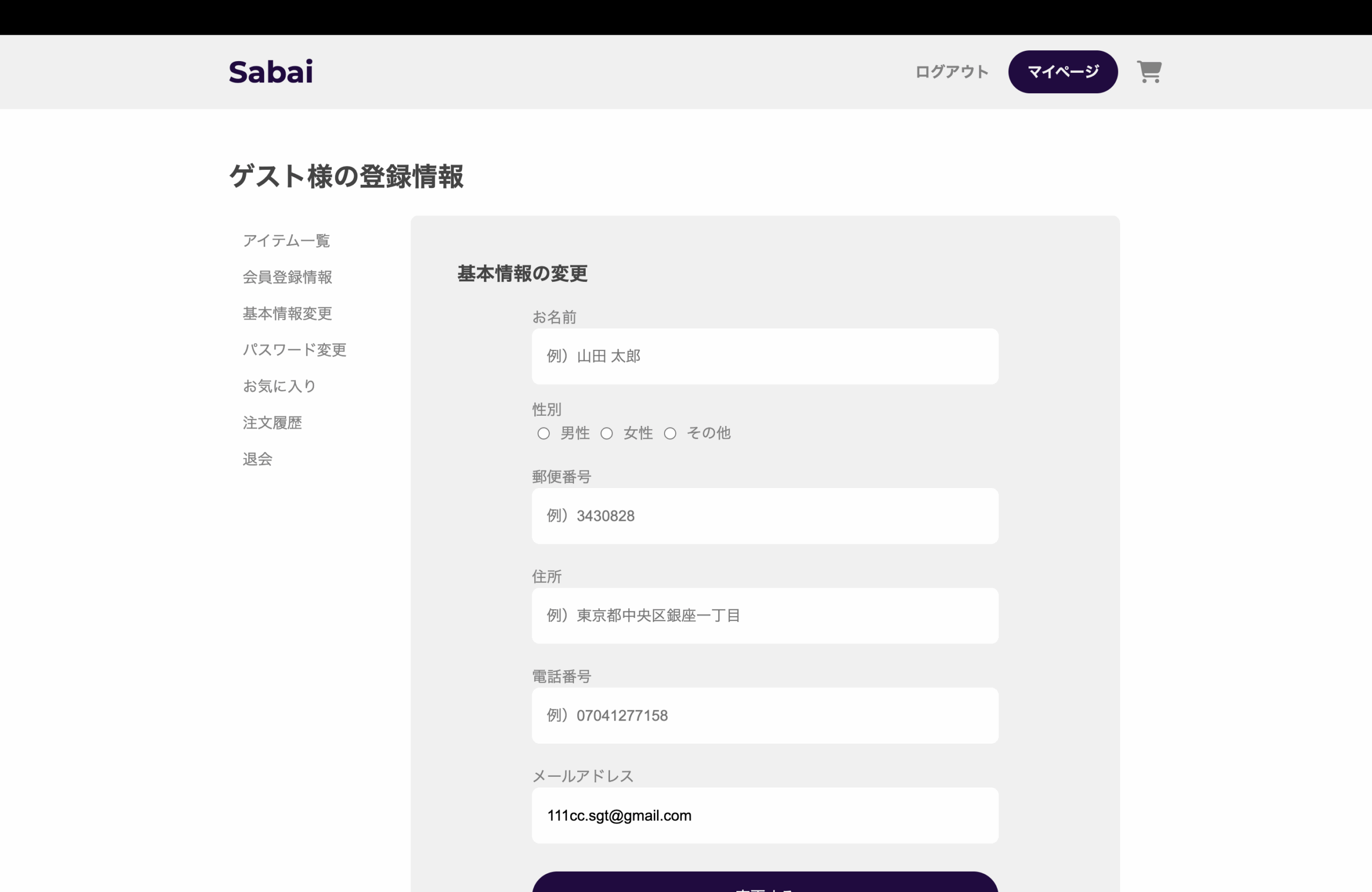 - 会員情報変更画面