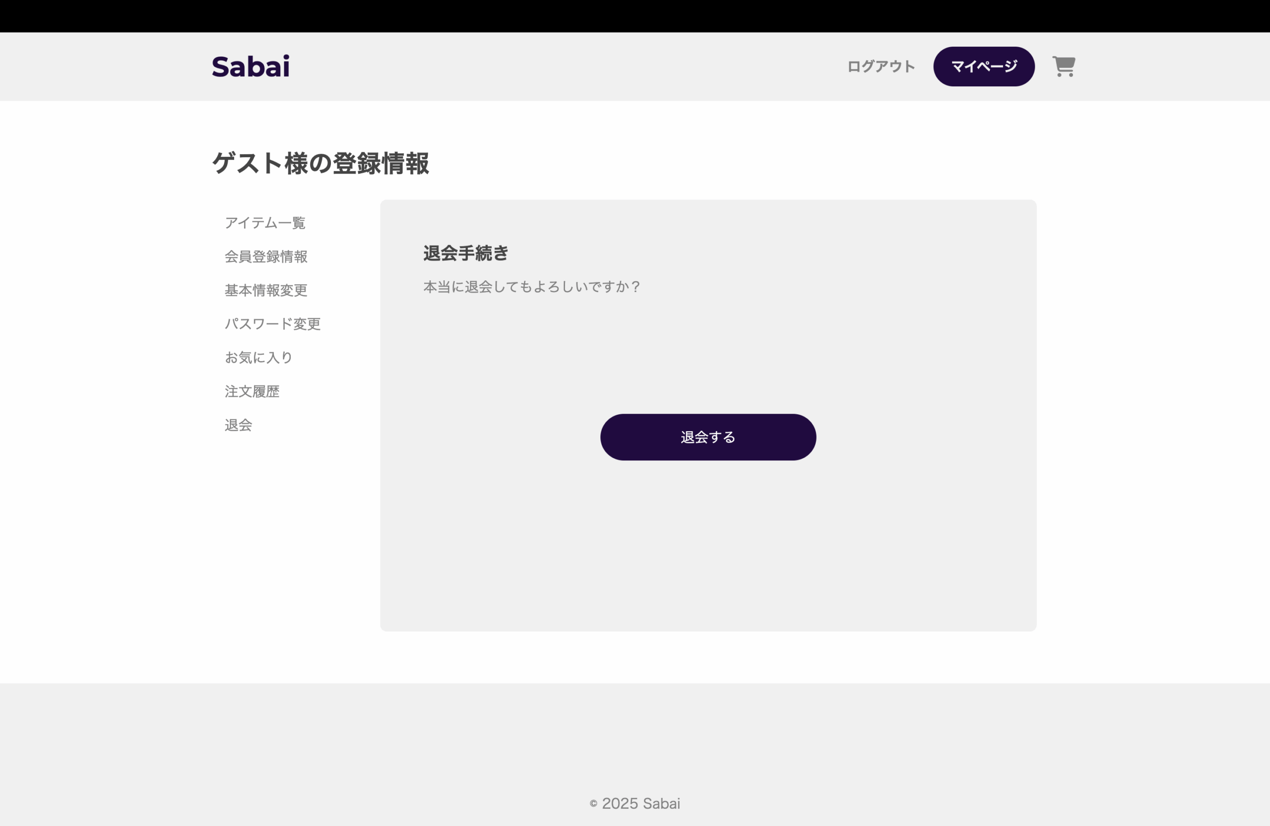 - 退会手続き画面