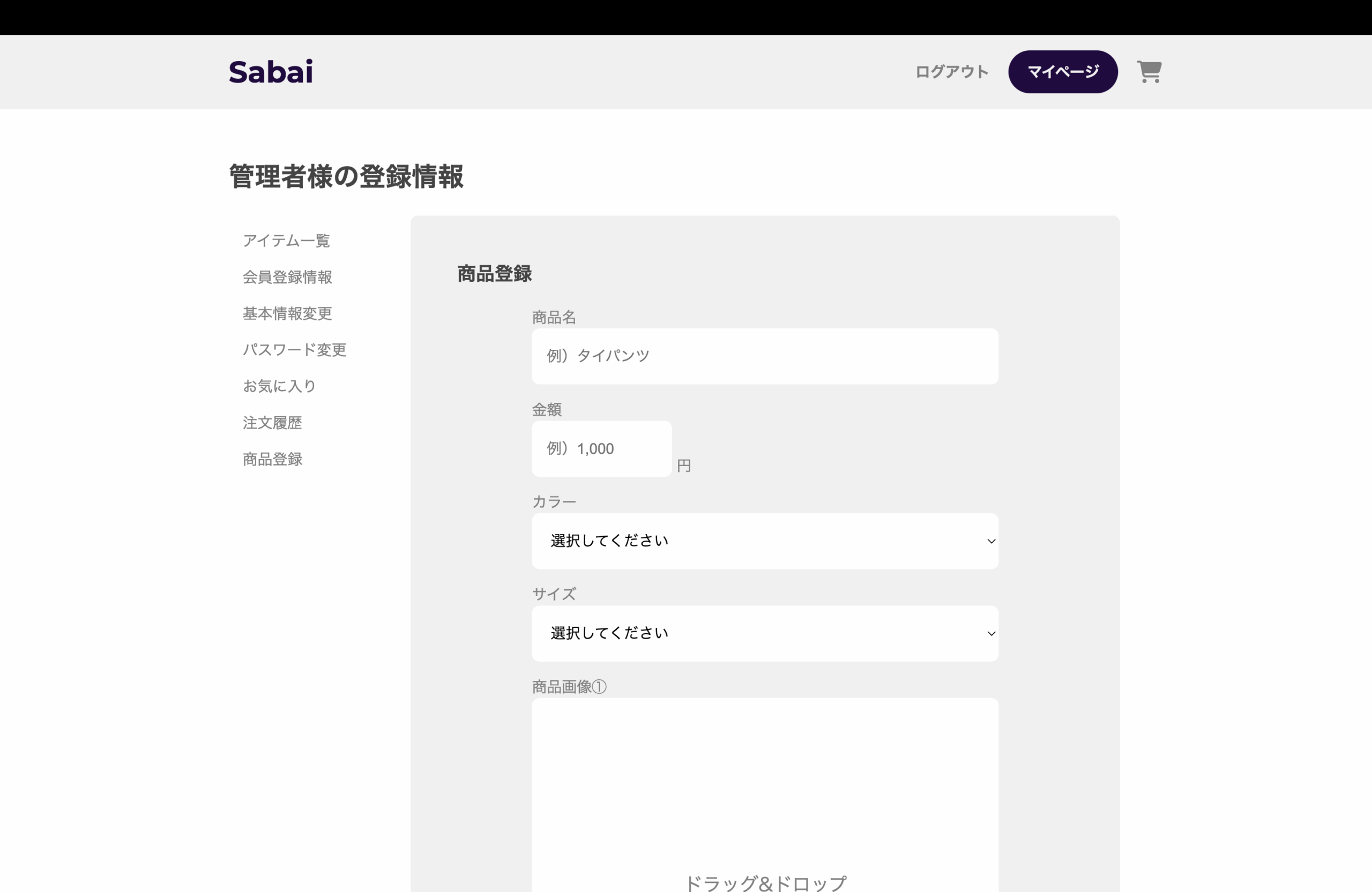 - 商品登録画面(管理者のみ)